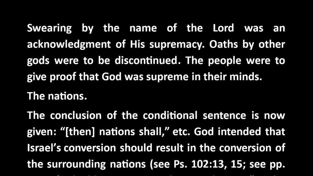 Jer 4:2 and if in a truthful, just and righteous way you swear, ‘As surely as the LORD lives,’ then the nations will invoke blessings by him and in him they will boast.”
